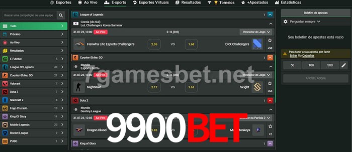 O 9900bet oferece uma grande seleção de opções de apostas em e-sports com probabilidades competitivas